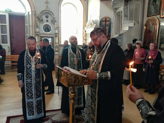 В первый день Святой Четыредесятницы в кафедральном соборном храме Воскресения Христова были совершены уставные великопостные богослужения – утреня, часы, изобразительны и вечерня.