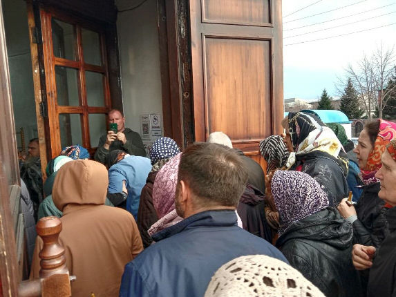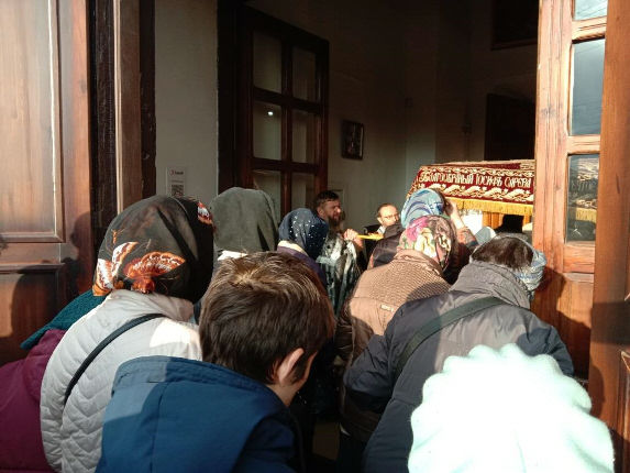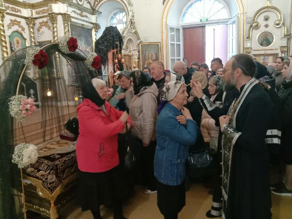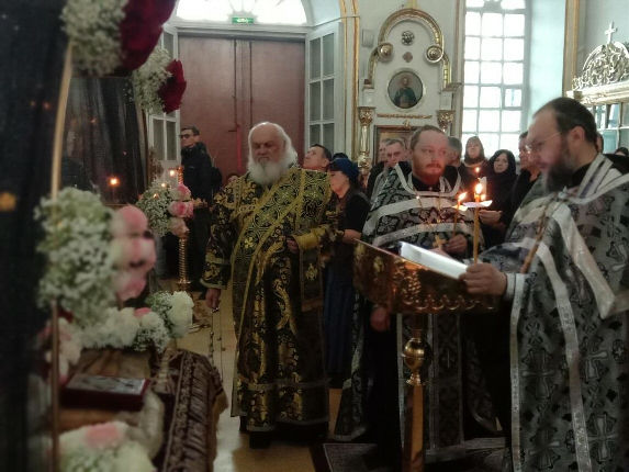 Сегодня же, в Страстную Пятницу, при большом стечении народа, была совершена Утреня Великой Субботы с Чином Погребения Плащаницы Спасителя.
