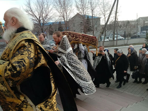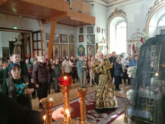 10 апреля 2026 года, Великий Пяток (Великая Пятница) в Воскресенском соборе г. Семипалатинска, в 14:00 совершена Великая Вечерня с выносом Святой Плащаницы и малое повечерие с чтением канона «О распятии Господни и на плач Пресвятыя Богородицы».